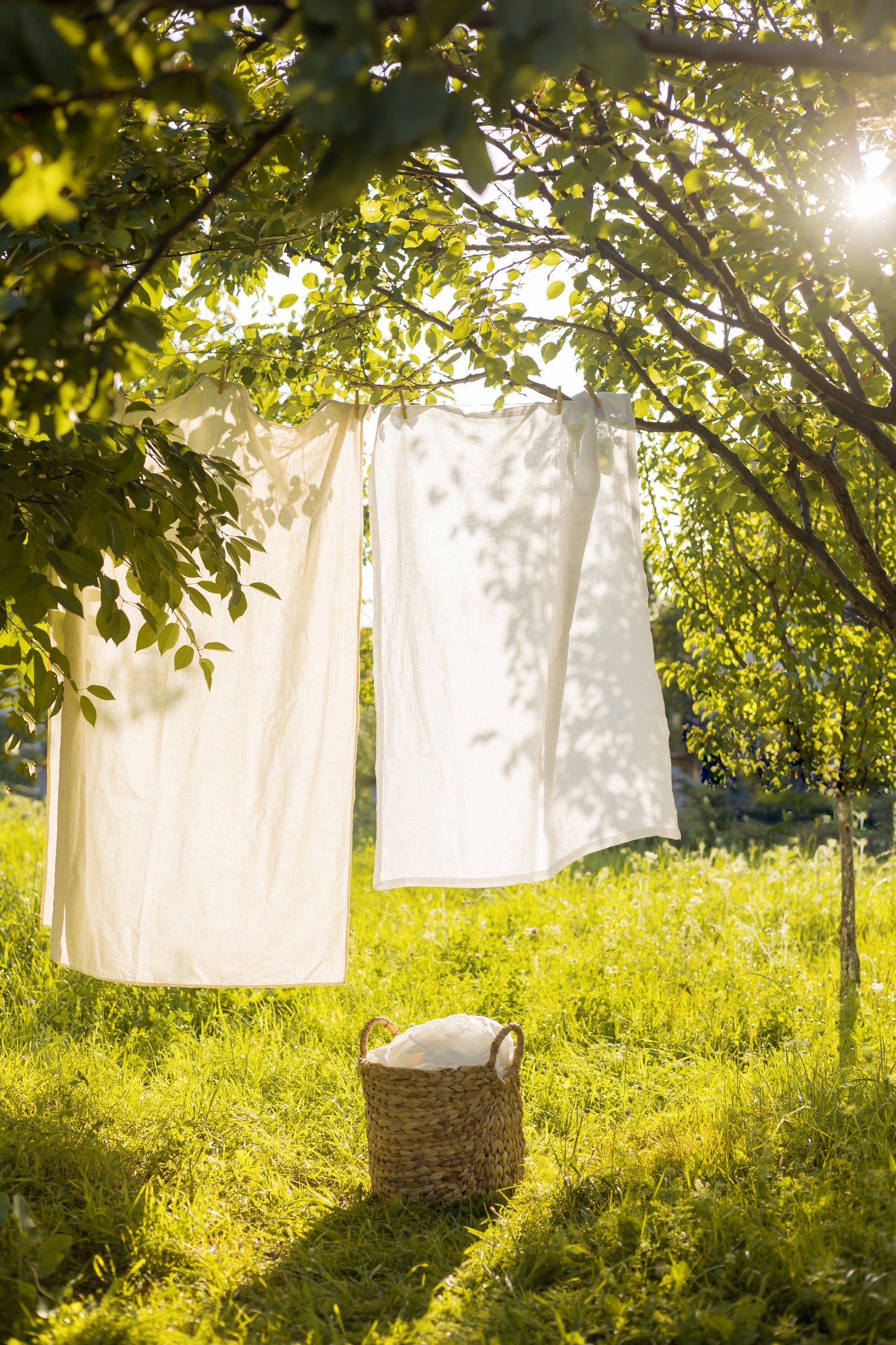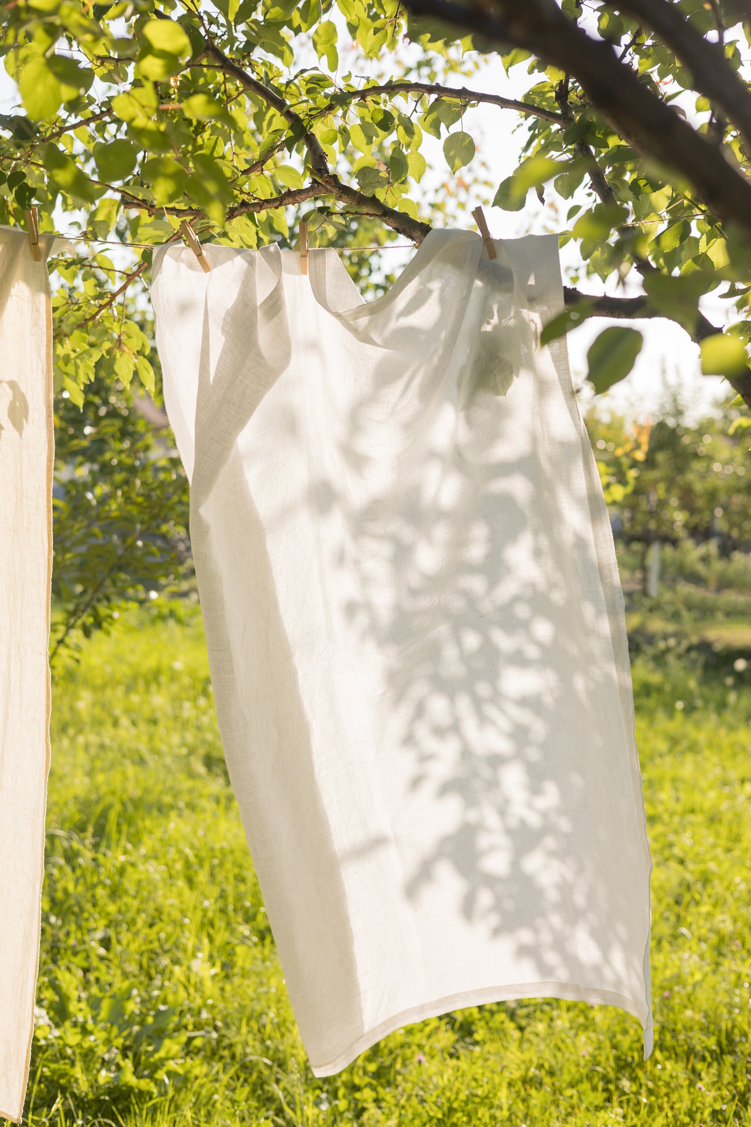 Linen loves to breathe, so air drying is ideal. Lay your linen flat on a clean surface or hang it up to dry on a drying rack or over a bed frame.